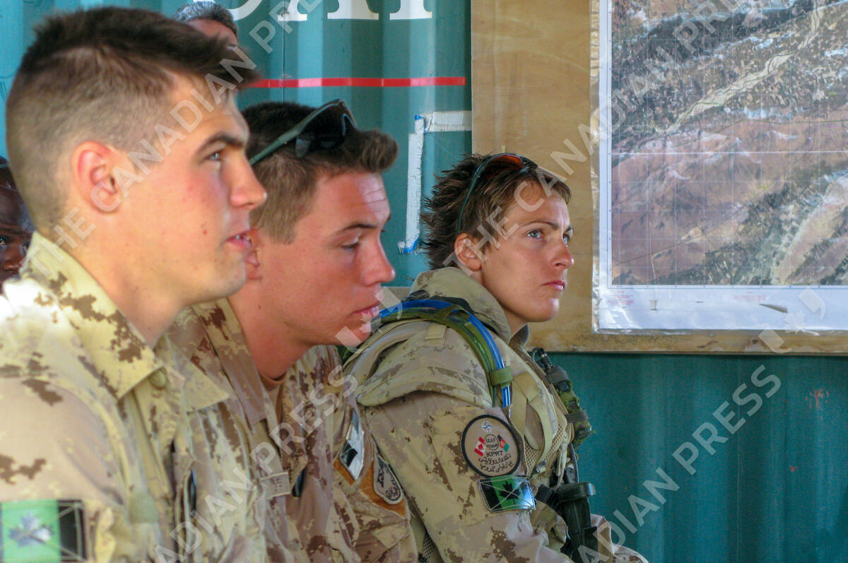 Soldiers are seen at a pre-mission briefing in Kandahar Airfield, Afghanistan, on Saturday, May 23, 2009. THE CANADIAN PRESS IMAGES/Colin Perkel