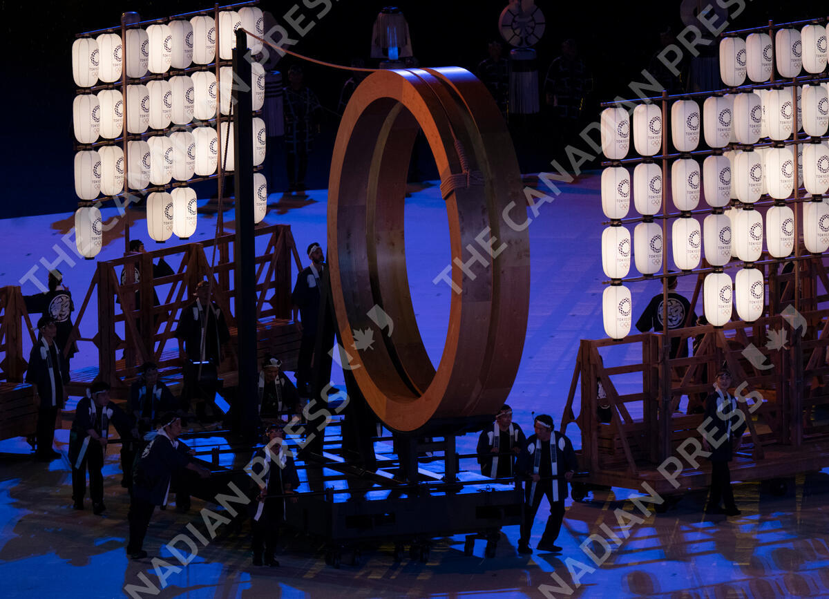 Dancers perform during the opening ceremonies during the Tokyo Olympics in Tokyo, Japan on Friday, July 23, 2021. THE CANADIAN PRESS/Adrian Wyld