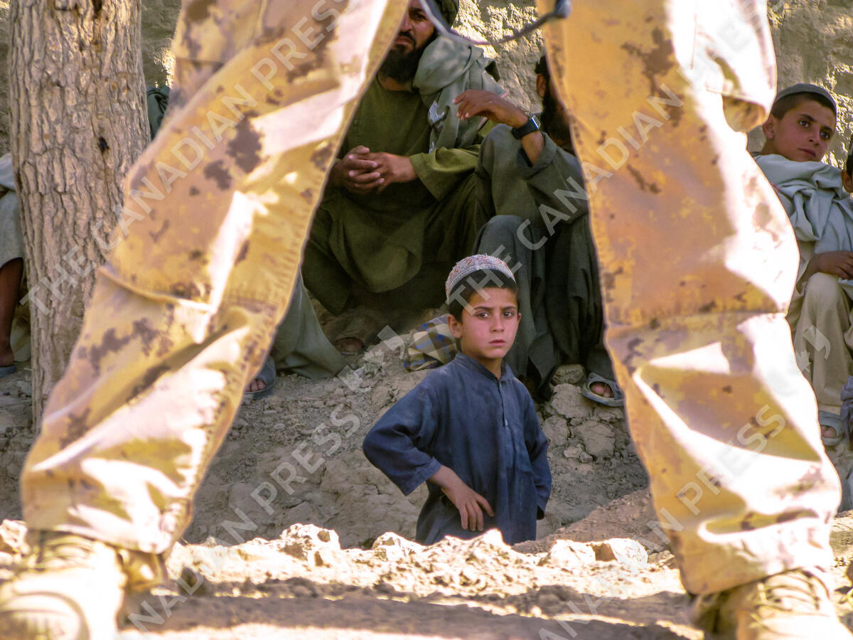 A boy eyes a Canadian soldier in Salavat, Afghanistan,during an operation on Thursday, June 18, 2009. The soldiers were on a two-day hunt for insurgents and their weapons. THE CANADIAN PRESS IMAGES/Colin Perkel