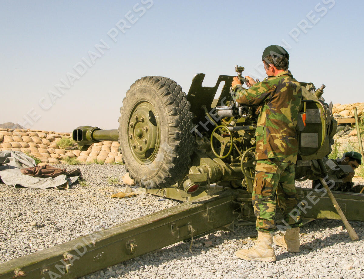A soldier with the Afghan National Army learns to use an artillery piece at Patrol Base Sperwan Ghar, in Kandahar Province in southern Afghanistan, on Sunday, May 31, 2009. Canadian soldiers led the training. THE CANADIAN PRESS IMAGES/Colin Perkel