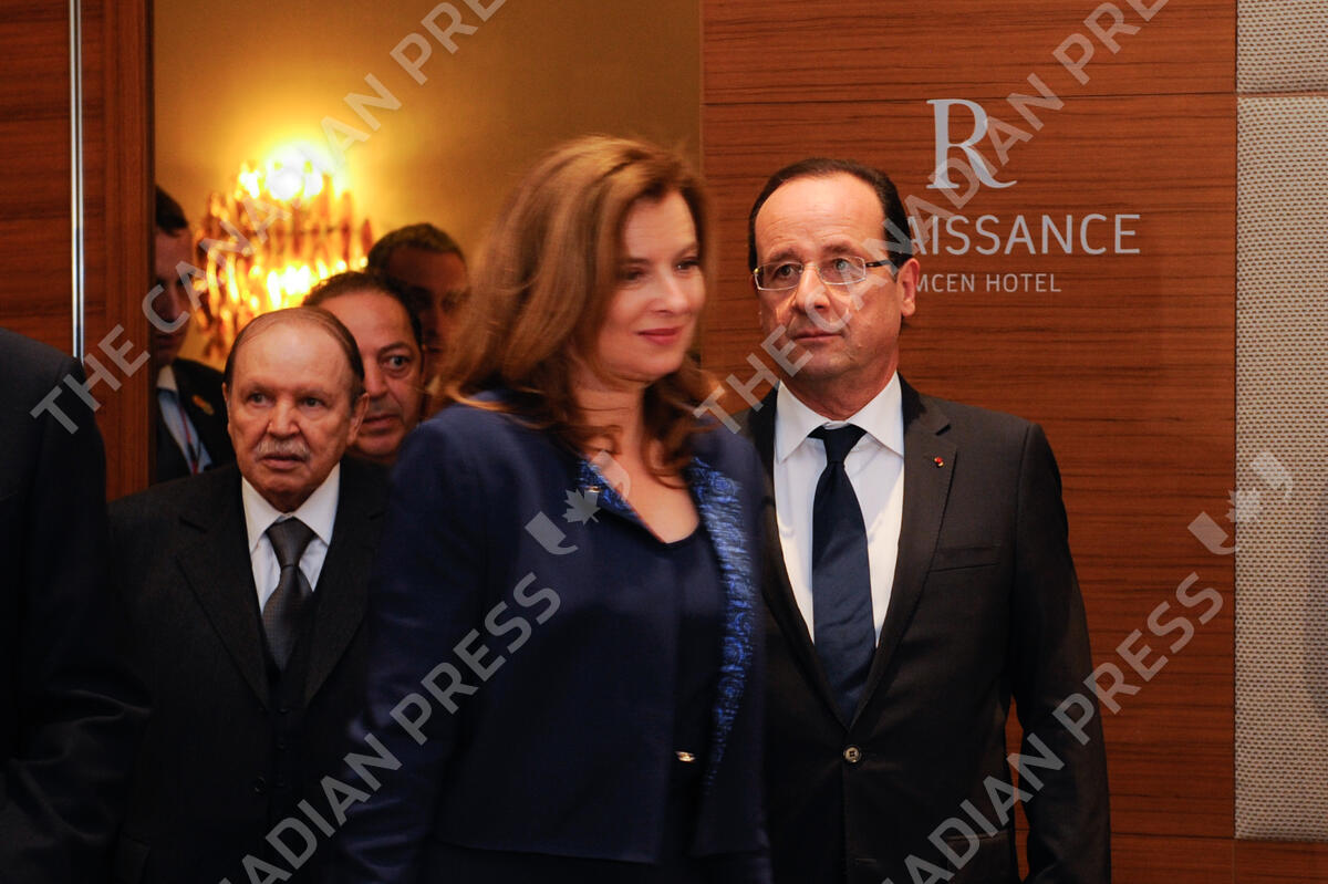 French President Francois Hollande, his companion Valerie Trierweiler and his Algerian counterpart Abdelaziz Bouteflika during an official dinner at the Marriott Hotel in Tlemcen, Algeria on December 20, 2012, on the second day of Hollande's two-day state visit to the country. Photo by Christophe Guibbaud/ABACAPRESS.COM