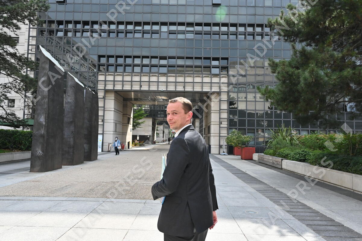 Junior Minister of Public Action and Accounts Olivier Dussopt holds a meeting with his team outside the Economy Ministry on June 7, 2021 in Paris, France. Photo by Elodie Gregoire/ABACAPRESS.COM