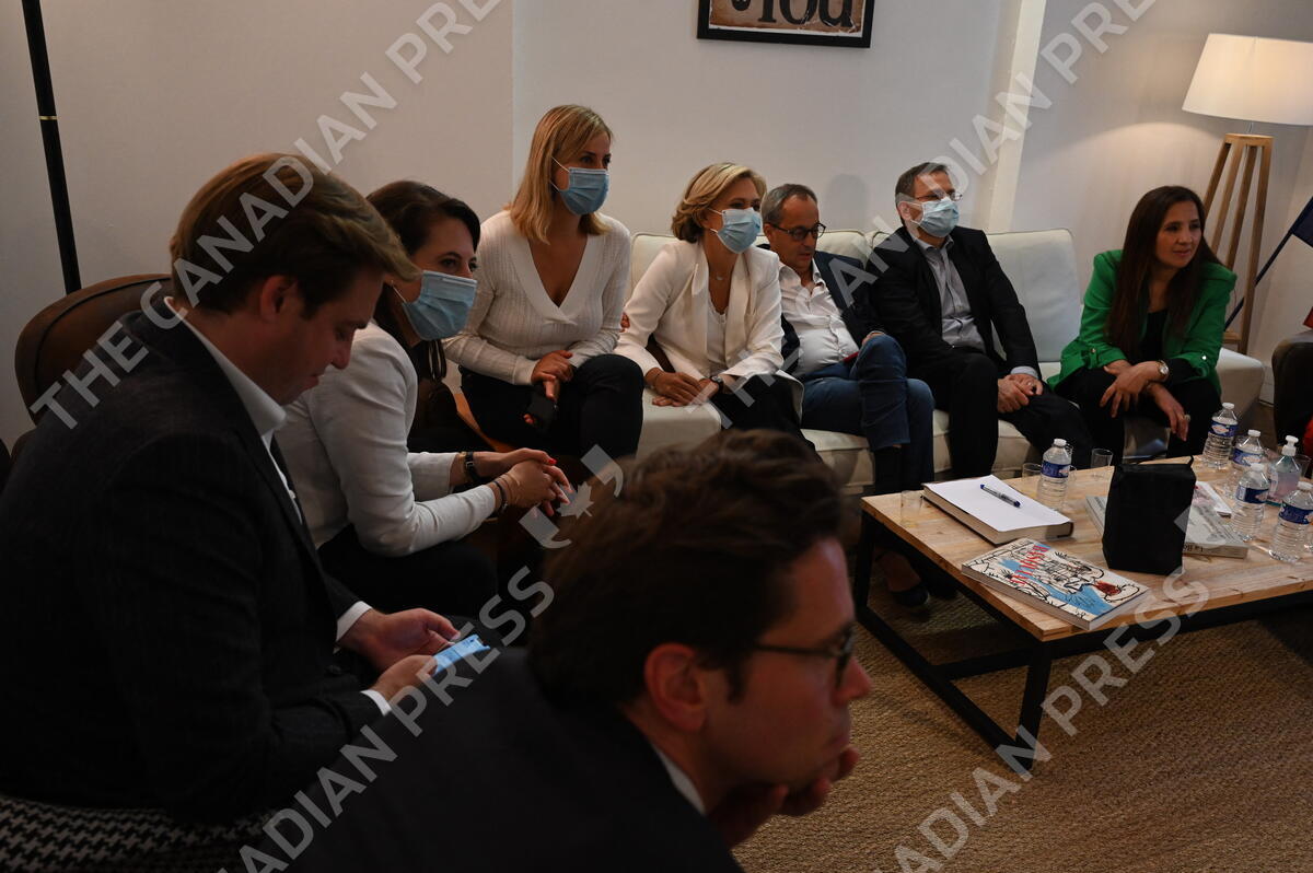 President of the Ile-de-France region and presidential candidate for Soyons Libres party Valerie Pecresse is seen alongside her husband Jerome Pecresse at her headquarters in Paris, France on June 26 2021. Photo by Elodie Gregoire/ABACAPRESS.COM