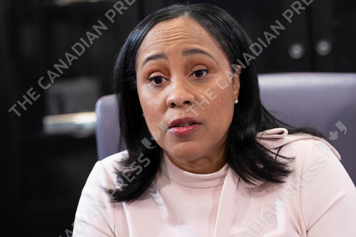 FILE - Fulton County Georgia District Attorney Fani Willis is photographed in her office in Atlanta, on Jan. 4, 2022. Willis on Monday, Aug. 29, 2022, announced a sprawling indictment targeting members of what she said is a violent street gang that has been targeting the Atlanta area homes of famous athletes, entertainers and others who flaunt expensive possessions on social media. (AP Photo/Ben Gray, File)