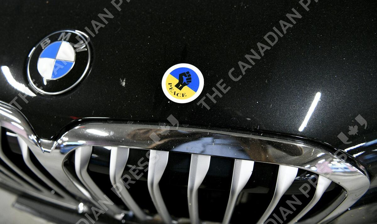 Stickers supporting Ukraine were glued to Russian-owned cars at the Helsinki-Vantaa airport on Monday, 29th August, 2022. Many Russians leave their luxury cars at the Helsinki airport's parking garage on their way to Europe destinations. LEHTIKUVA / HEIKKI SAUKKOMAA - FINLAND OUT. NO THIRD PARTY SALES.