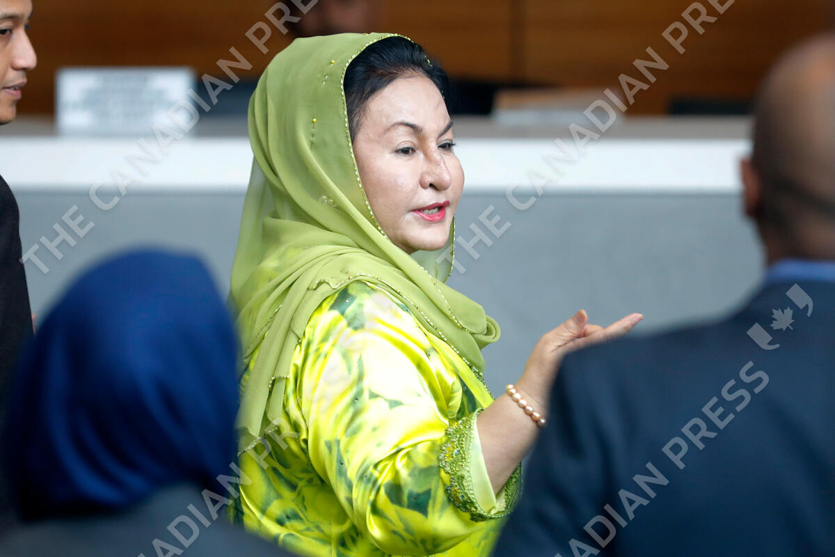 FILE - Rosmah Mansor, wife of Malaysian Prime Minister Najib Razak, arrives at the Anti-Corruption Agency for questioning in Putrajaya, on Oct. 3, 2018. Former first lady Rosmah was convicted Thursday, Sept. 1, 2022, of soliciting and receiving bribes during her husband’s corruption-tainted administration Thursday, a week after her husband was imprisoned over the massive looting of the 1MDB state fund.(AP Photo/Vincent Thian, File)