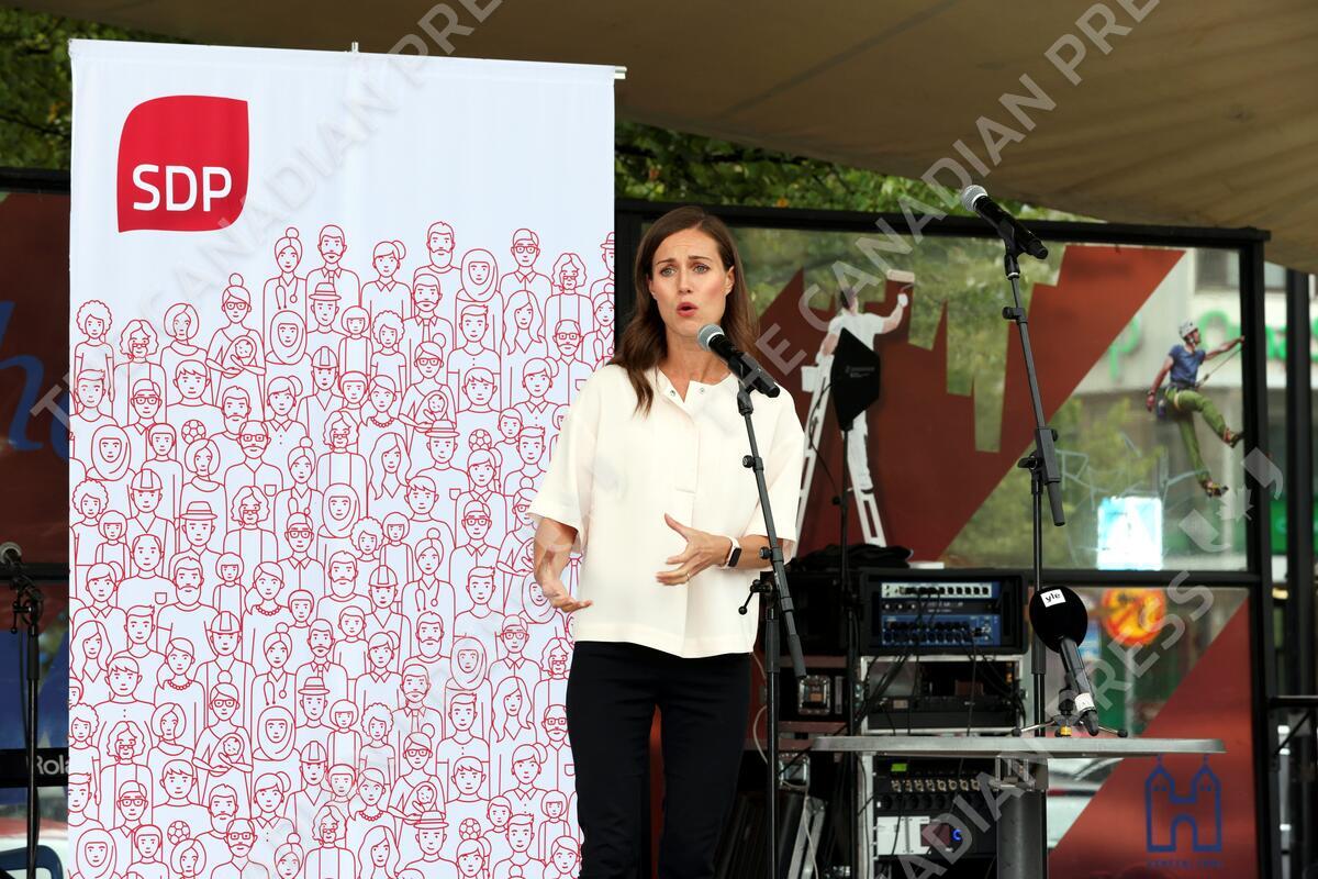 Finnish Prime Minister Sanna Marin is giving a speech during a meeting of Social Democratic party of Finland in Hämeenlinna, Finland on August 25, 2022. LEHTIKUVA / JUHA TAMMINEN - FINLAND OUT. NO THIRD PARTY SALES.