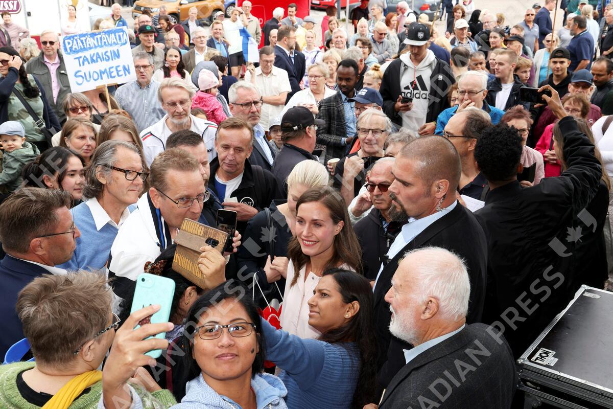 Finnish Prime Minister Sanna Marin meeting local people during a meeting of Social Democratic party of Finland in Hämeenlinna, Finland on August 25, 2022. LEHTIKUVA / JUHA TAMMINEN - FINLAND OUT. NO THIRD PARTY SALES.