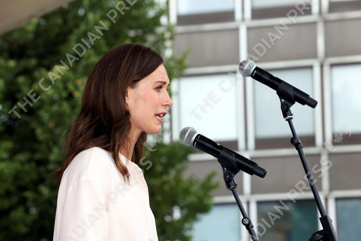 Finnish Prime Minister Sanna Marin is giving a speech during a meeting of Social Democratic party of Finland in Hämeenlinna, Finland on August 25, 2022. LEHTIKUVA / JUHA TAMMINEN - FINLAND OUT. NO THIRD PARTY SALES.