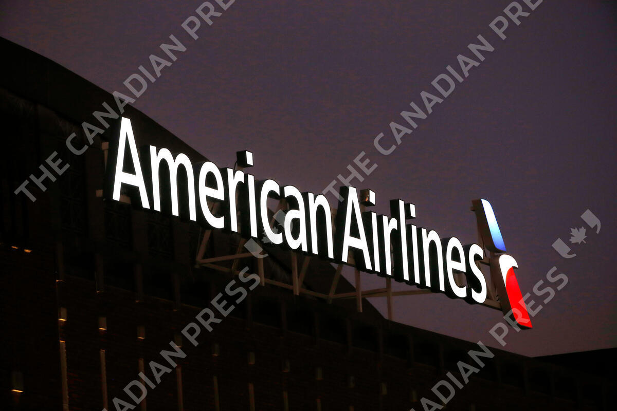 FILE - The American Airlines logo on top of the American Airlines Center in Dallas, Texas on Dec. 19, 2017. Federal investigators say a mistake by the captain of an American Airlines flight caused the plane’s wing to clip the ground during takeoff from New York's John F. Kennedy International Airport in 2019. The National Transportation Safety Board says the captain applied too much rudder power to offset a crosswind, causing the plane to veer to the left and nearly leave the runway. (AP Photo/ Michael Ainsworth, file)