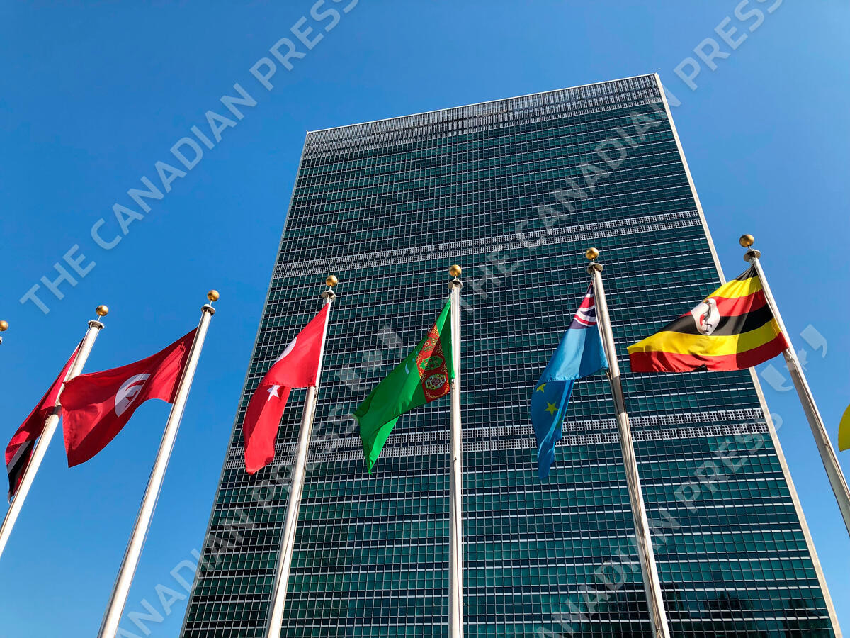 FILE - Flags fly outside United Nations headquarters in New York during the 74th session of the United Nations General Assembly, Saturday, Sept. 28, 2019. A major United Nations meeting on the landmark nuclear Non-Proliferation Treaty is starting Monday, Aug. 1, 2022, after a long delay due to the COVID-19 pandemic, as Russia’s war in Ukraine has reanimated fears of nuclear confrontation and cranked up the urgency of trying reinforce the 50-year-old treaty. (AP Photo/Jennifer Peltz, File)