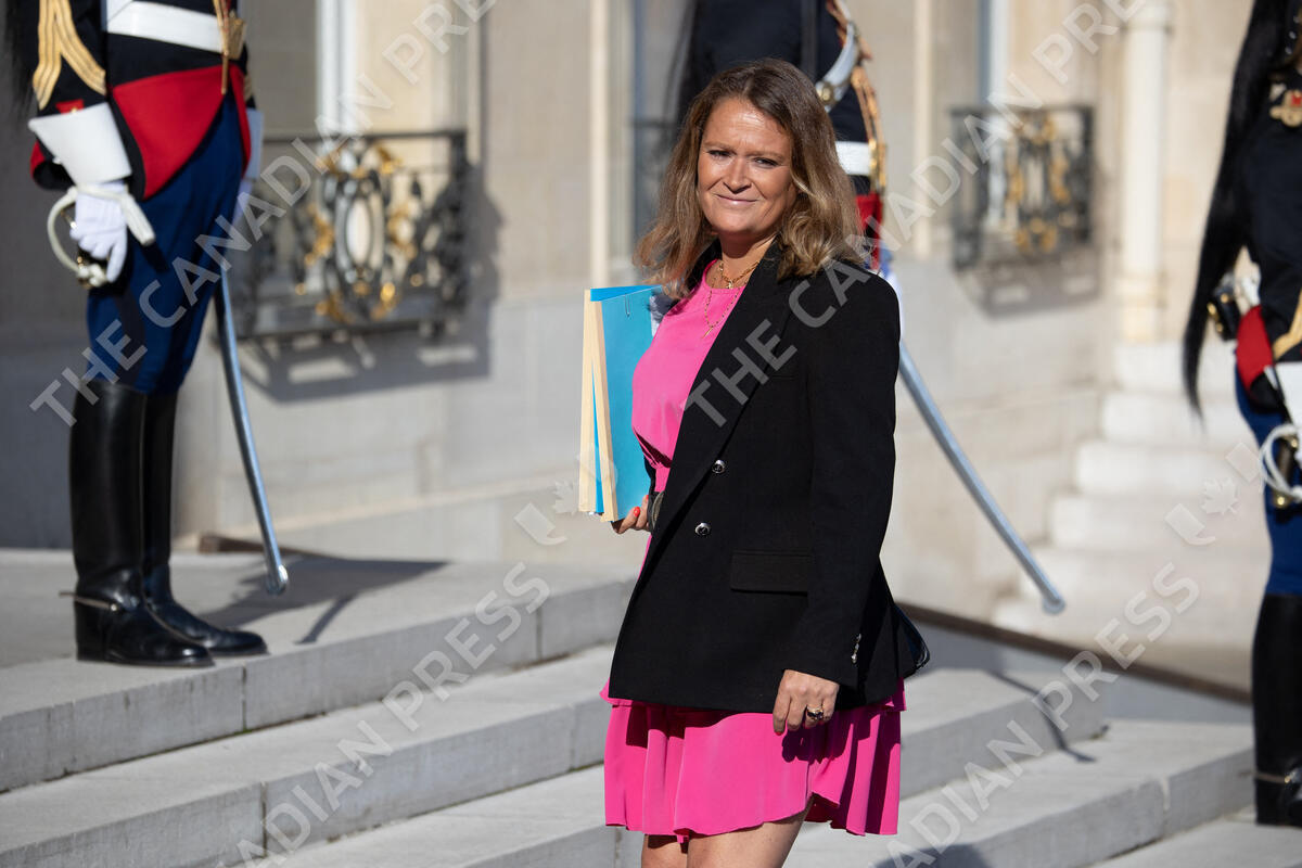 French minister Olivia Gregoire arrives to attend the weekly cabinet meeting at The Elysee Presidential Palace in Paris on August 31, 2022. Photo by Raphael Lafargue/ABACAPRESS.COM