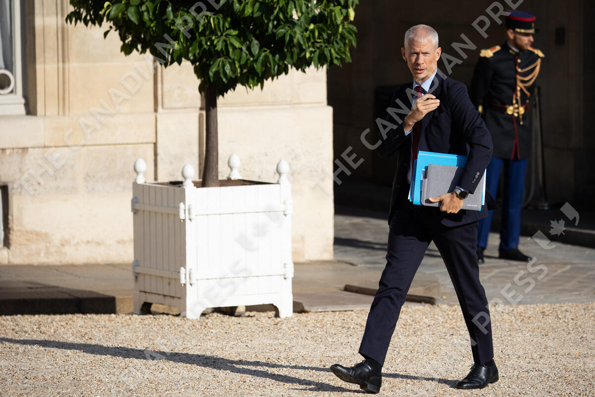 French minister Franck Riester arrives to attend the weekly cabinet meeting at The Elysee Presidential Palace in Paris on August 31, 2022. Photo by Raphael Lafargue/ABACAPRESS.COM