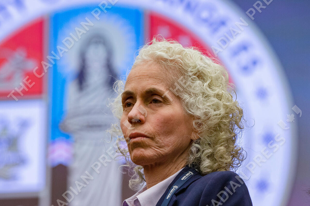FILE - In this March, 12, 2020, file photo, Los Angeles County Public Health Director Barbara Ferrer takes questions at a news conference in Los Angeles. Los Angeles County has dropped out of the high COVID-19 community level under federal guidelines, as infections and rates of hospitalizations continue to fall. Ferrer said Thursday, Aug. 11, 2022, that while trends are encouraging, "there are still thousands of new people each day who are infected and therefore capable of infecting others." (AP Photo/Damian Dovarganes, File)