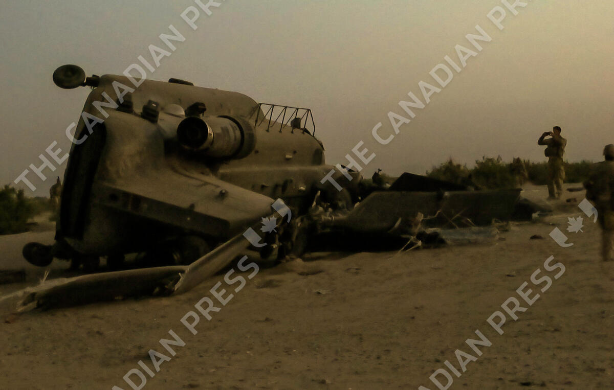 A soldier takes a photograph of a Canadian Forces Chinook that crashed on landing deep in Panjwaii district of southern Afghanistan on Monday, May 16, 2011. The $45-million helicopter was a writeoff. THE CANADIAN PRESS IMAGES/Colin Perkel