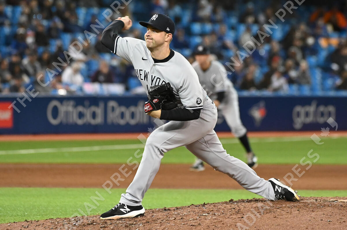 New York Yankees' Micheal King pitches in the fifth inning of an American League baseball game against the Toronto Blue Jays in Toronto on Thursday, Sept. 30, 2021. THE CANADIAN PRESS/Jon Blacker