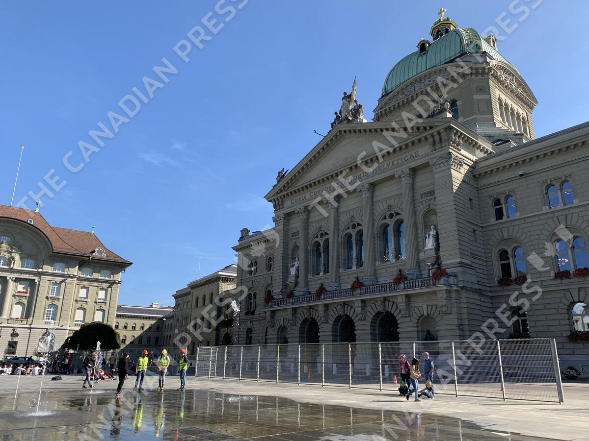 The federal capital Bern experienced another turbulent evening on Thursday. Several thousand people defied a ban on demonstrations by the authorities to voice their opposition to the anti-Covid measures. The Bundesplatz in front of the Swiss parliament, completely blocked by the security forces. Switzerland Bern, September 23 2021. Photo by Francois Glories/ABACAPRESS.COM