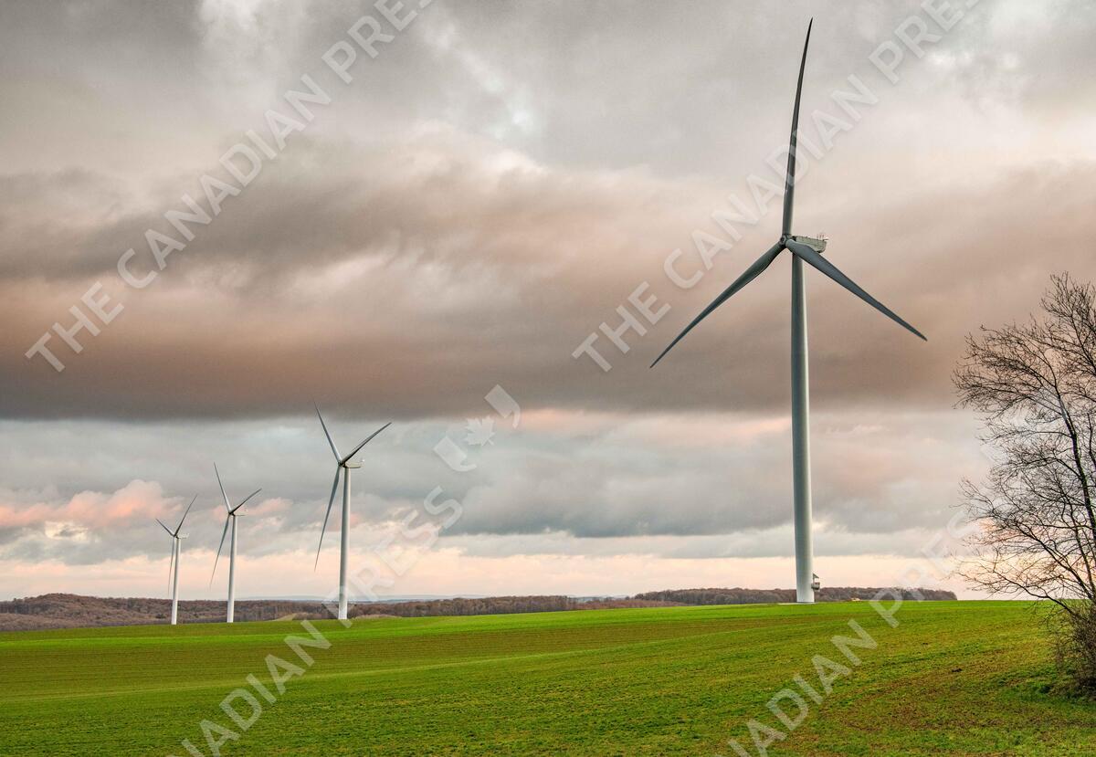 The new wind turbines (Eoliennes) plant in Esley near Vittel, east of France in February 2021. Photo by Christophe Geyres/ABACAPRESS.COM