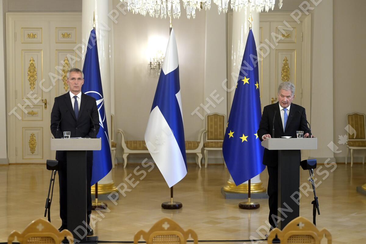 Visiting NATO Secretary General Jens Stoltenberg (L) and President of Finland Sauli Niinistö during their joint press conference after their meeting during the visit of The North Atlantic Council's (NAC) in Helsinki, Finland on Monday, October 25, 2021. LEHTIKUVA / VESA MOILANEN - FINLAND OUT. NO THIRD PARTY SALES.