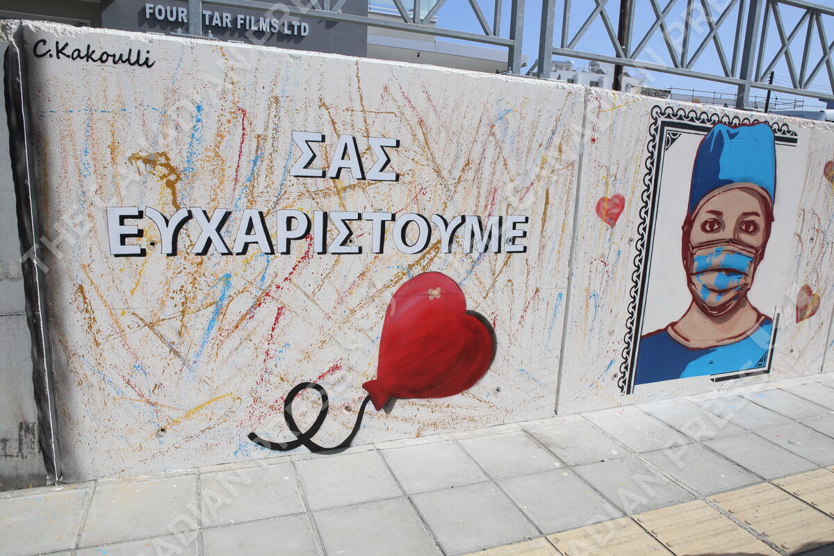 LARNACA, Feb. 26, 2021 A mural paying tribute to health workers created by Cypriot artist Christos Kakoullis is seen along a boulevard in Larnaca, Cyprus, Feb. 26, 2021. (Photo by George Christophorou/Xinhua) (Credit Image: © George Christophorou/Xinhua via ZUMA Press)