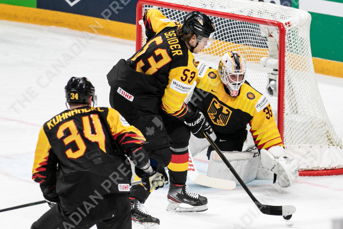 NIEDERBERGER Mathias (Germany) SEIDER Moritz (Germany) KUHNHACKL Tom (Germany) during World Championship 2021 - Germany vs Finland, Ice Hockey in Riga, Latvia, May 29 2021