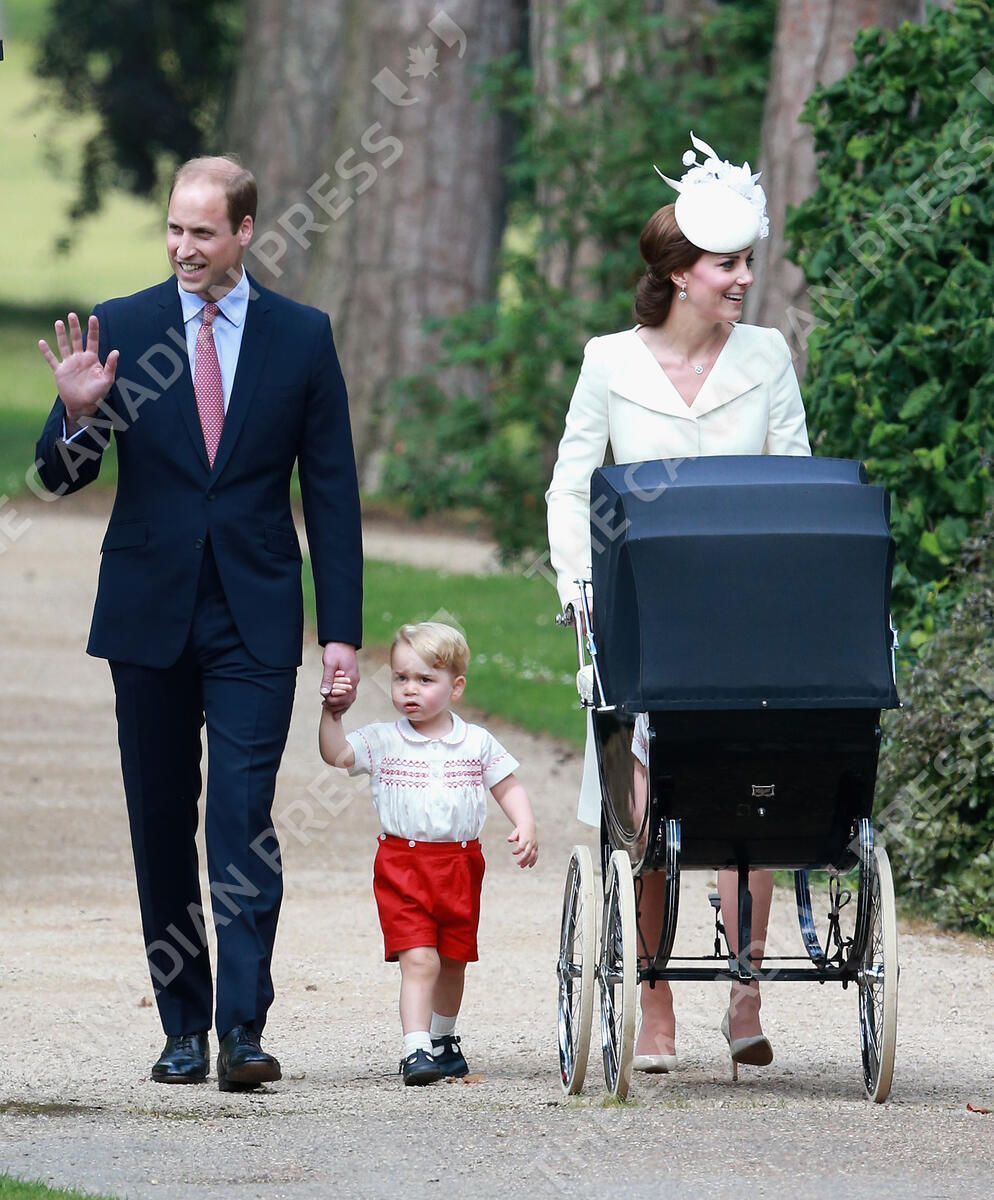 File photo dated 05/07/15 of the Duke and Duchess of Cambridge with Prince George and Princess Charlotte pushed to her christening at the Church of St Mary Magdalene in Sandringham, Norfolk. The Duchess of Cambridge will have spent a decade as an HRH when she and the Duke of Cambridge mark their 10th wedding anniversary on Thursday. Issue date: Wednesday April 28, 2021.