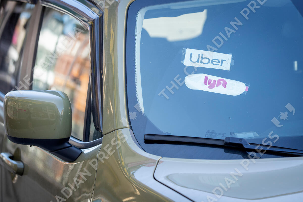 A vehicle with Uber and Lyft sticker in Kingston, Ontario on Wednesday, April 7, 2021. THE CANADIAN PRESS IMAGES/Lars Hagberg