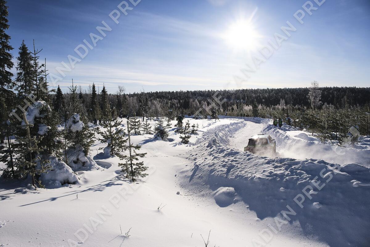 Andreas Mikkelsen and co-driver Ola Floene of Norway steer their Skoda Fabia Evo car during the Arctic Rally Finland, second round of the FIA World Rally Championship in Rovaniemi, Finnish Lapland, on February 28, 2021. LEHTIKUVA / HANNU RAINAMO - FINLAND OUT. NO THIRD PARTY SALES.