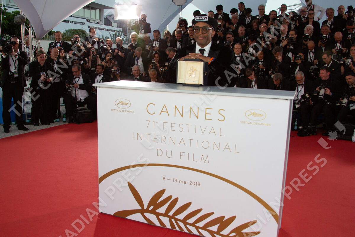 File photo dated May 19, 2018 of Director Spike Lee posing with the Grand Prix award for 'BlacKkKlansman' and Laura Harrier next to him at the Palme D'Or Winner Photocall during the 71st annual Cannes Film Festival at Palais des Festivals on May 19, 2018 in Cannes, France. - US director Spike Lee will head the jury at the Cannes Film Festival in July, making him the first black person to take on the role. Photo by David Boyer/ABACAPRESS.COM