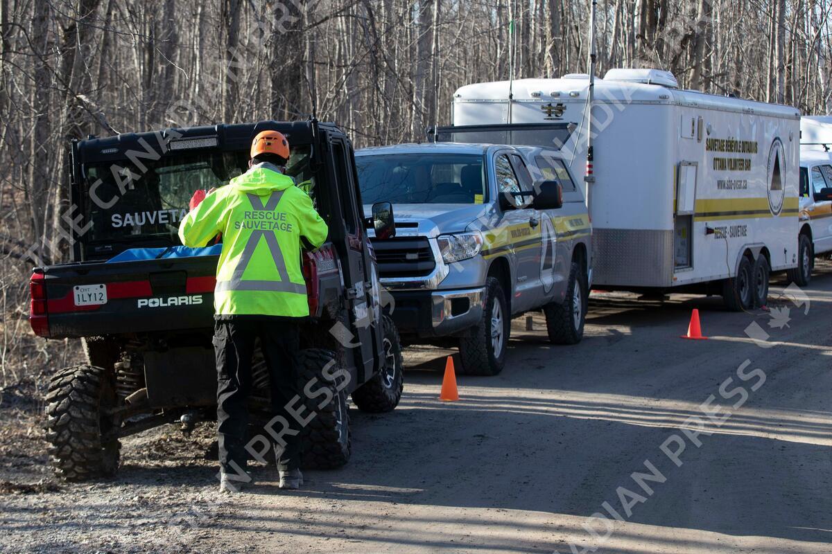 A member Ottawa Volunteer Search and Rescue stands near the area where three-year-old Jude Walter Leyton went missing from his family near Verona, Ontario on Monday March 29, 2021. Jude went missing on March 28 from a wooded area. THE CANADIAN PRESS/Lars Hagberg