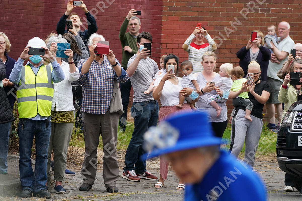 Members of the public photograph Queen Elizabeth II during her visit to a community project in Glasgow, as part of her traditional trip to Scotland for Holyrood Week. Picture date: Wednesday June 30, 2021.