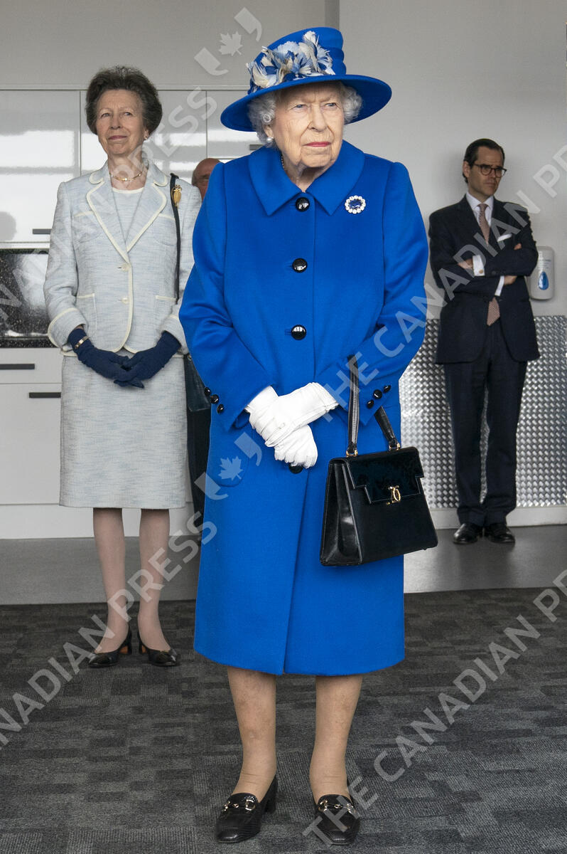 Queen Elizabeth II and the Princess Royal during a visit to Skypark, Glasgow, to receive a briefing from the UK Space Agency and view satellite production, as part of her traditional trip to Scotland for Holyrood Week. Picture date: Wednesday June 30, 2021.