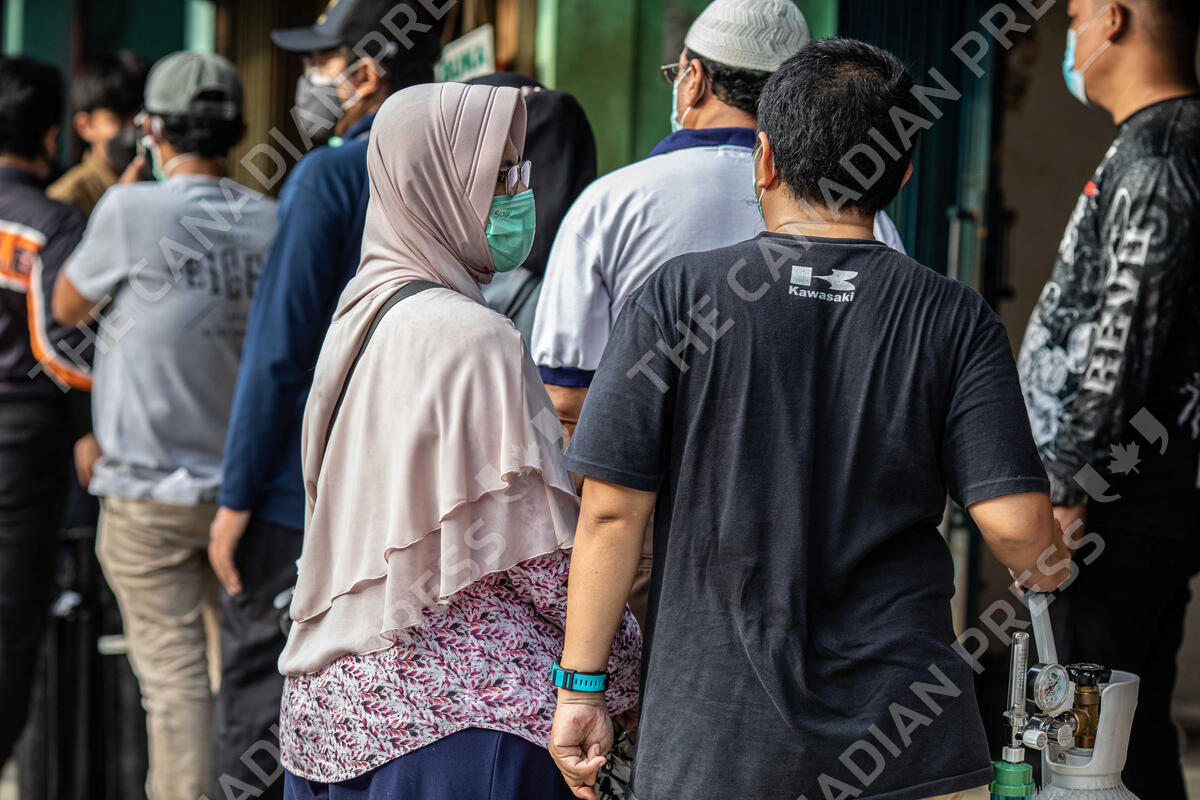 June 30, 2021, Jakarta, Jakarta, Indonesia: Families of COVID-19 patients queue to refill oxygen cylinders in the Manggarai area, Jakarta, Wednesday 30 June 2021..The demand for new oxygen cylinders and filling oxygen cylinders has increased drastically following the surge in cases of COVID-19 with a new, deadly variant in Indonesia. (Credit Image: © Donal Husni/ZUMA Wire)