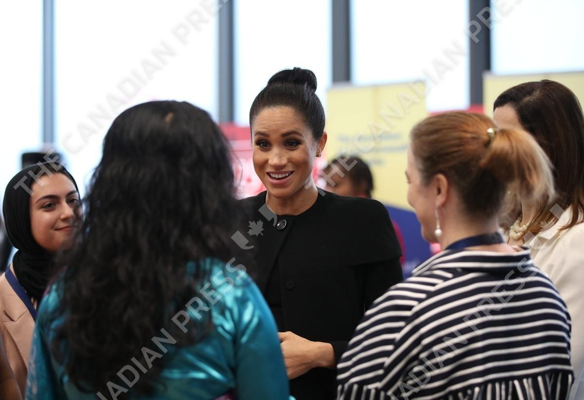 The Duchess of Sussex speaking to students during a visit to the Association of Commonwealth Universities at the University of London.