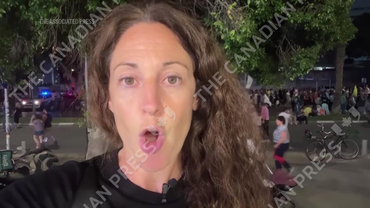 CP175151394 | Crowds cheer in Tel Aviv as TV reporter announces release of first group of hostages by Hamas