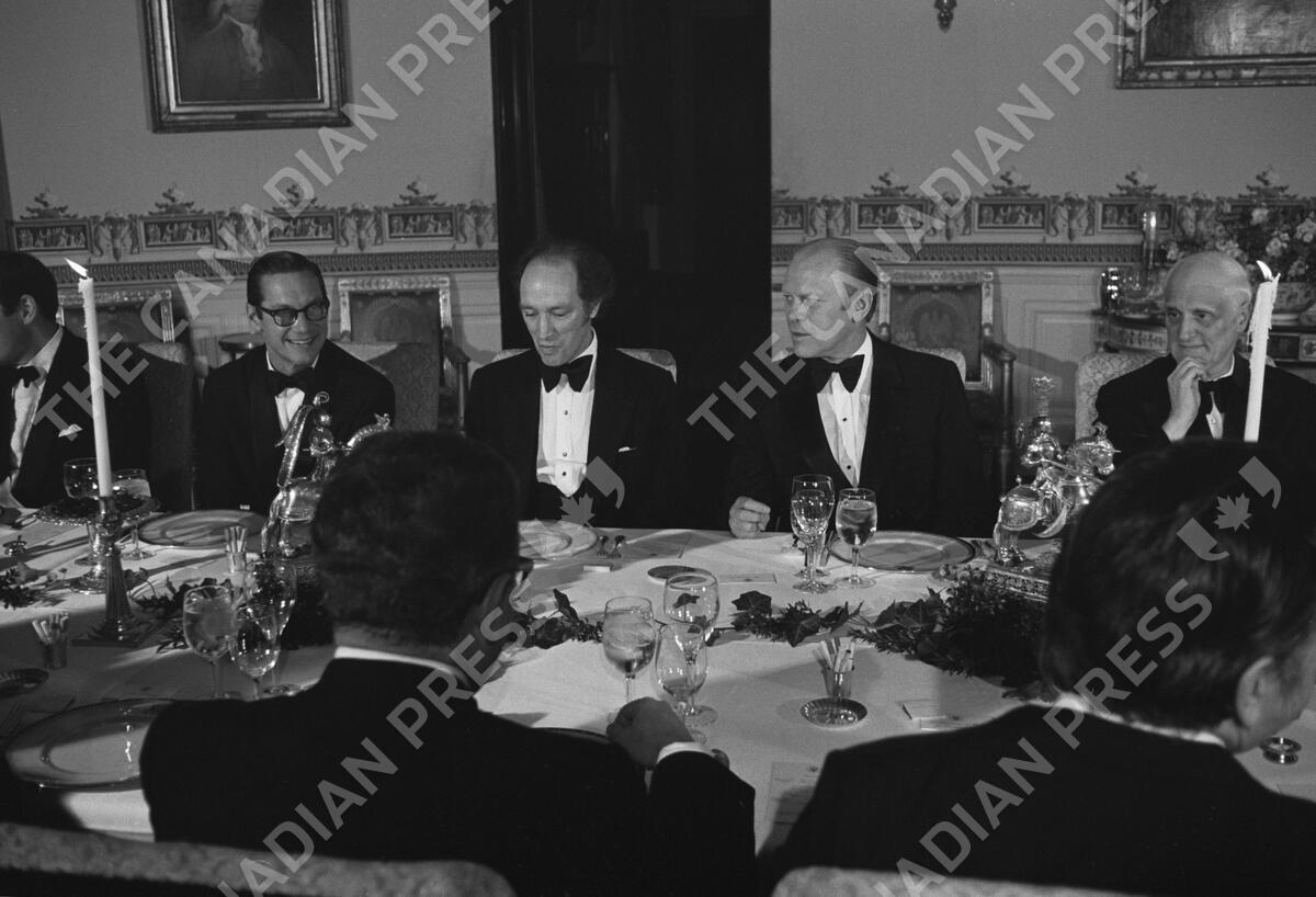 From the archival negative sleeve: Prime Minister Pierre Trudeau and U.S. President Gerald Ford sit at a dinner table in the Green Room near Washington, D.C., on December 4, 1974. THE CANADIAN PRESS/Fred Chartrand
