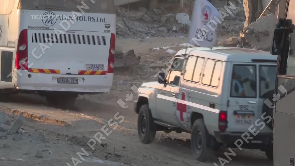 CP173851056 | Red Cross convoy is on its way to pick up the first Israeli hostages in Gaza