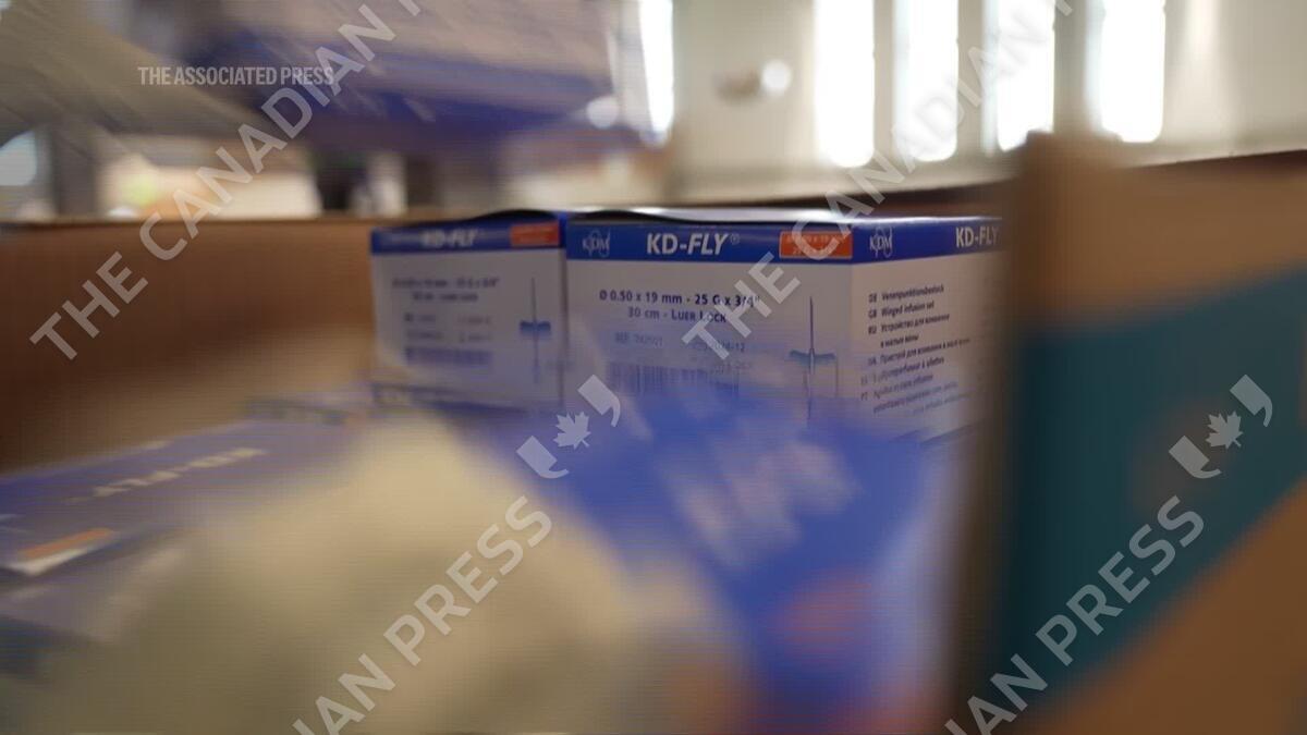 A humanitarian warehouse was working at what it described as "full capacity" on Monday, as aid officials called for full access to the Gaza Strip. Workers at UNICEF’s Supply Division warehouse on the outskirts of the Danish capital packed health, hygiene, and medical kits into boxes. (AP Video: James Brooks)