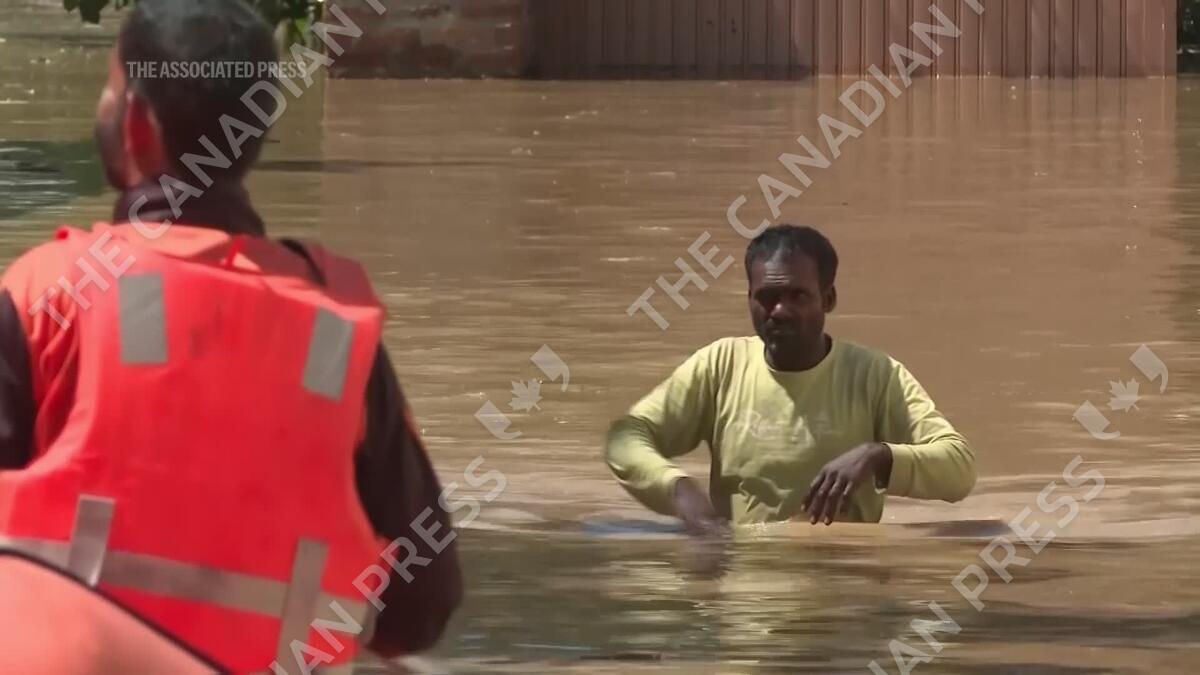 Floodwaters entered many residential areas on the outskirts of Srinagar, the main city in Indian-controlled Kashmir, on Thursday after a breach of the Jhelum river embankment. (AP video by Mehraj Ud Din)