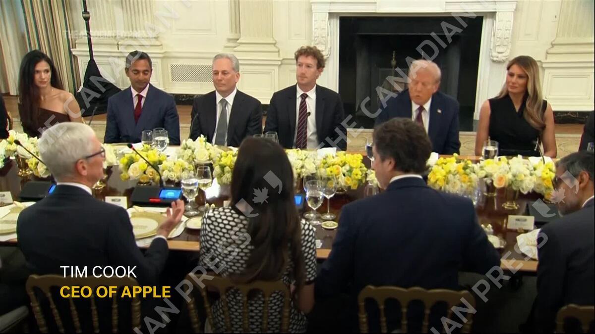 President Donald Trump hosted a high-powered group of tech executives at the White House on Thursday as he showcased research on artificial intelligence and boasted of investments that companies are making around the United States.