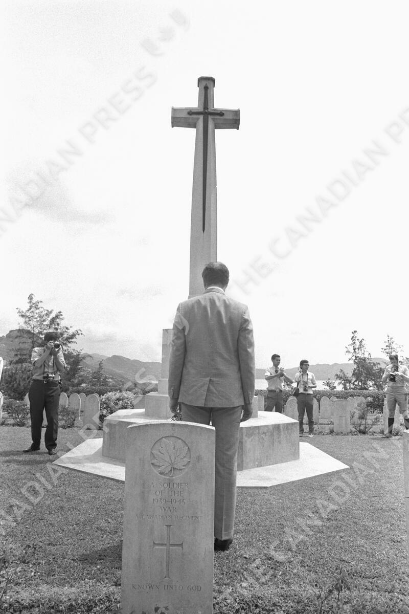 From the archival negative sleeve: Prime Minster Pierre Trudeau visits Sai Wan War Cemetery in Hongkong on May 24, 1970. THE CANADIAN PRESS/Chuck Mitchell