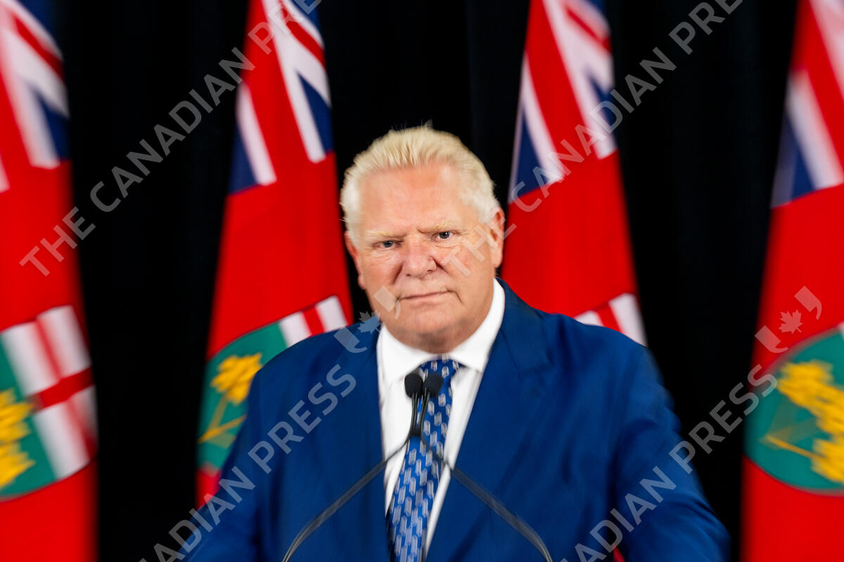 Ontario Premier Doug Ford speaks to the media during a funding announcement in Hamilton, Ont., Wednesday, Aug. 20, 2025. THE CANADIAN PRESS/Carlos Osorio
