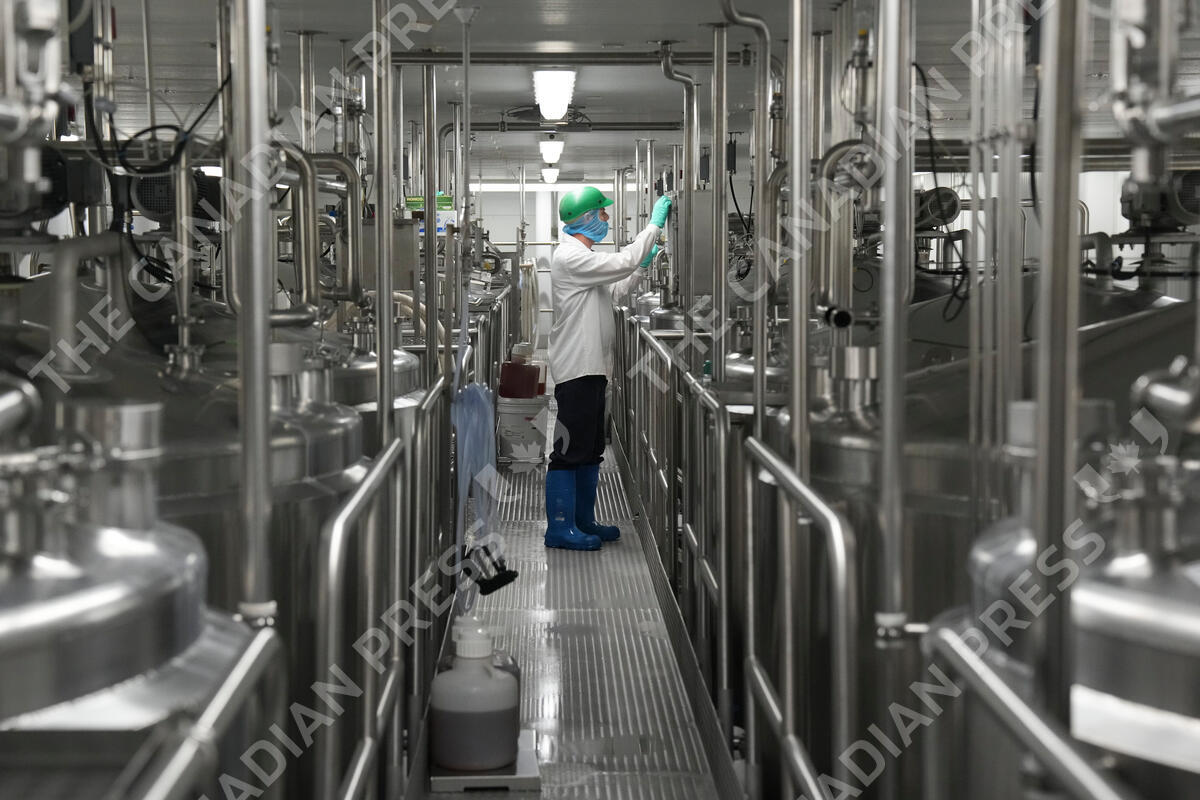 An employee works in the primary tank farm at the Chapman's Ice Cream plant in Markdale, Ont., on Friday, Sept. 19, 2025. THE CANADIAN PRESS/Chris Young