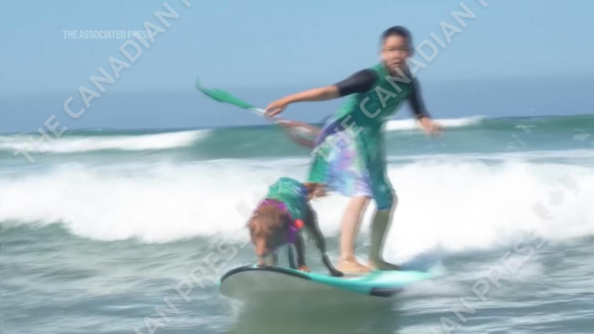 Dozens of canine competitors were stoked to take part in a 20th annual Surf-A-Thon in San Diego, raising funds for orphan pets cared for by the Helen Woodward Animal Center. (Sept. 8)