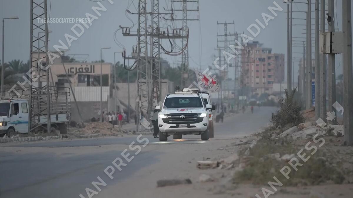 CP173851056 | Red Cross convoy is on its way to pick up the first Israeli hostages in Gaza