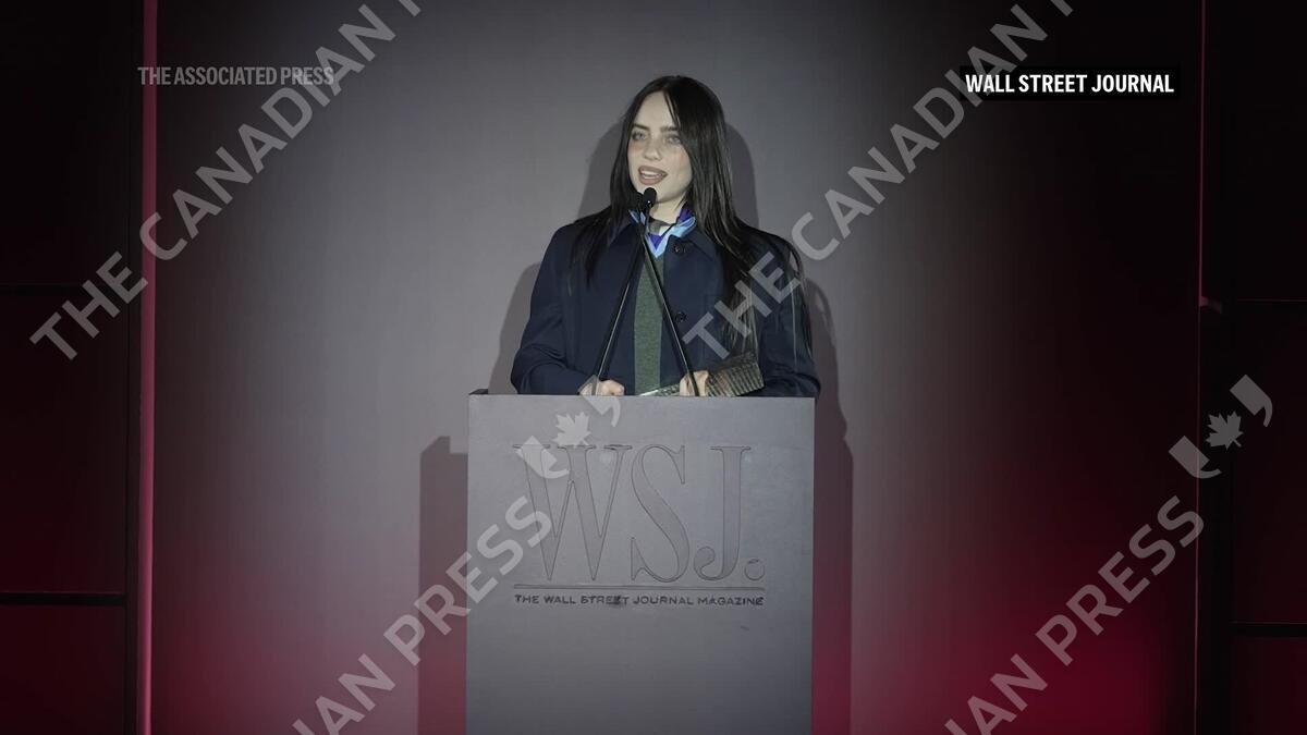 Billie Eilish calls for billionaires to give their money to make the world a better place. The musician was speaking at the Wall Street Journal Innovator Awards where she was honored for her music. (Oct. 31)