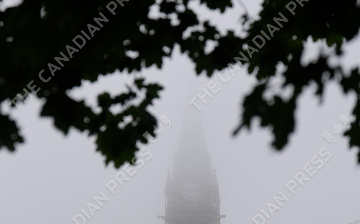 Fog shrouds the Peace tower on Parliament Hill in Ottawa on Tuesday, Sept. 23, 2025. THE CANADIAN PRESS/Adrian Wyld