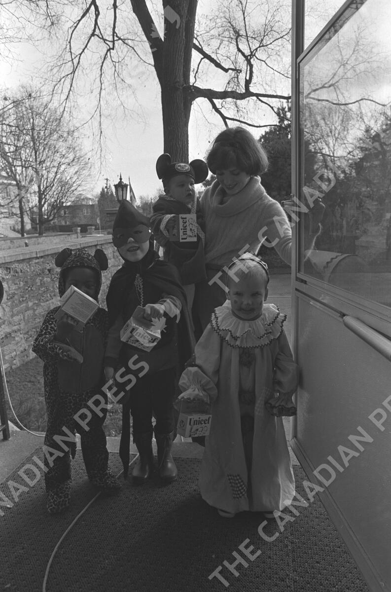 CP HISTORICAL ARCHIVE: MARGARET TRUDEAU TRICK-OR-TREATS WITH CHILDREN, OCTOBER 1976