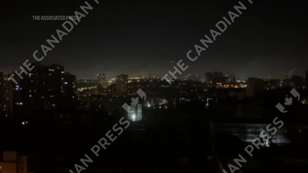 Russia unleashed a massive combined attack on Kyiv early Friday, sparking fires and scattering debris across many districts of the capital, Mayor Vitali Klitschko said. At least 11 people were injured as emergency crews responded to multiple strikes, he said in a statement. (AP video shot by: Yehor Konovalov)