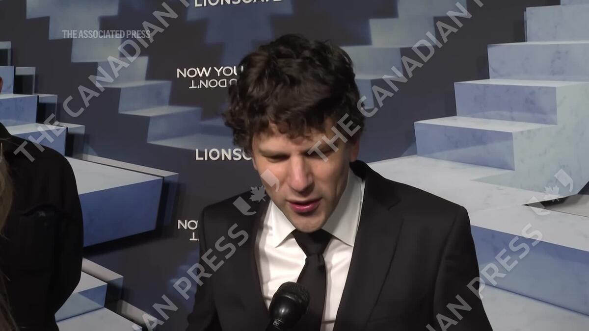 Returning for the third "Now You See Me" movie, Jesse Eisenberg has become the Vin Diesel-in-"Fast & Furious" type leader of the magician heist franchise. He says it's "the greatest treat of my life." (Nov. 10)